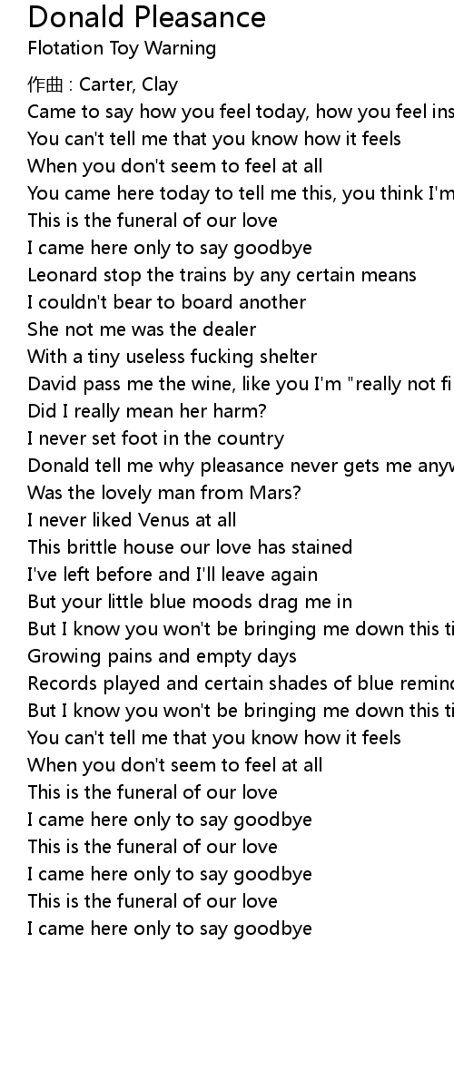 | Donald tell me why pleasance never gets me anywhere, anymore | |