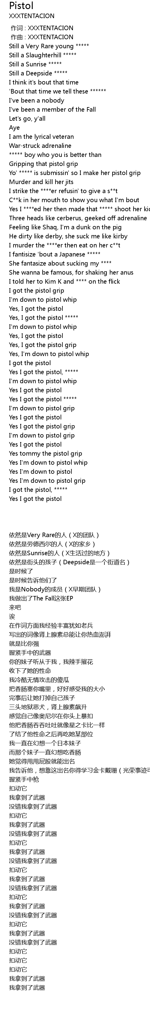 | [01:16.59] | Yes I got the pistol, ***** |