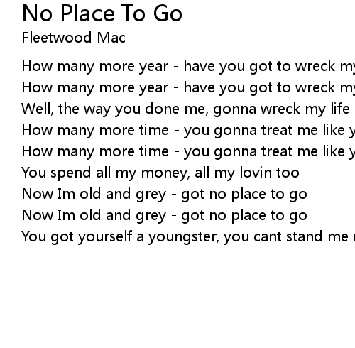 Now Im old and grey - got no place to go |
