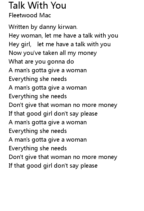 | Hey woman, let me have a talk with you | |