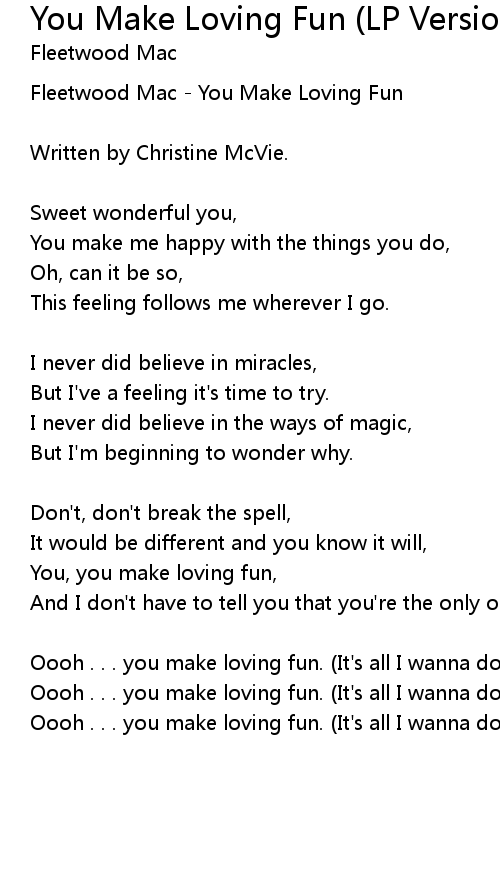 You, you make loving fun, |