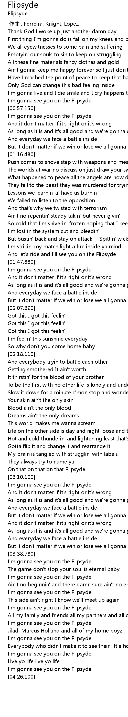 | [03:58.880] | I' m gonna see you on the Flipsyde |