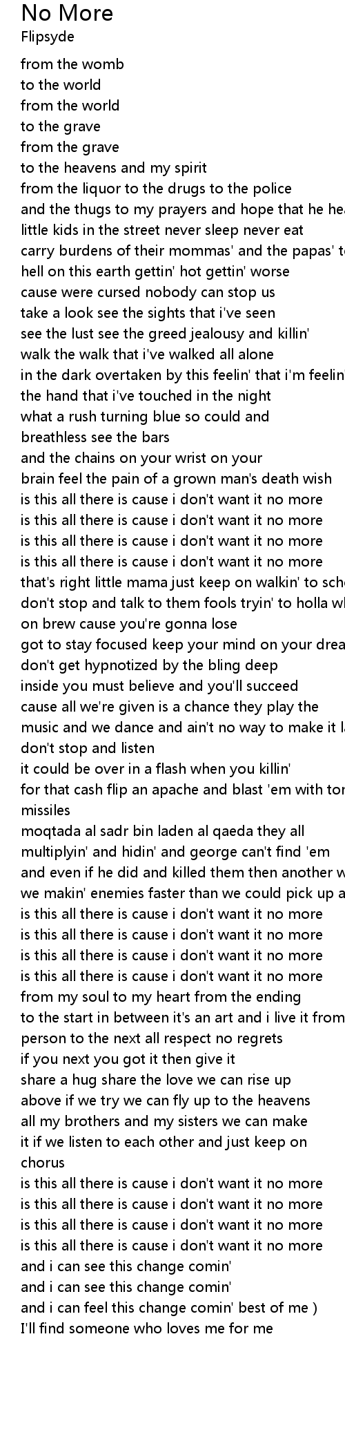 | [01:13.15] | is this all there is cause i don' t want it no more |