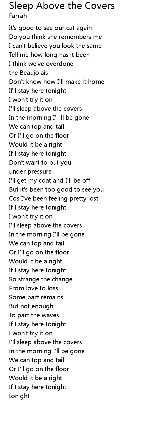 | I' ll sleep above the covers | |
