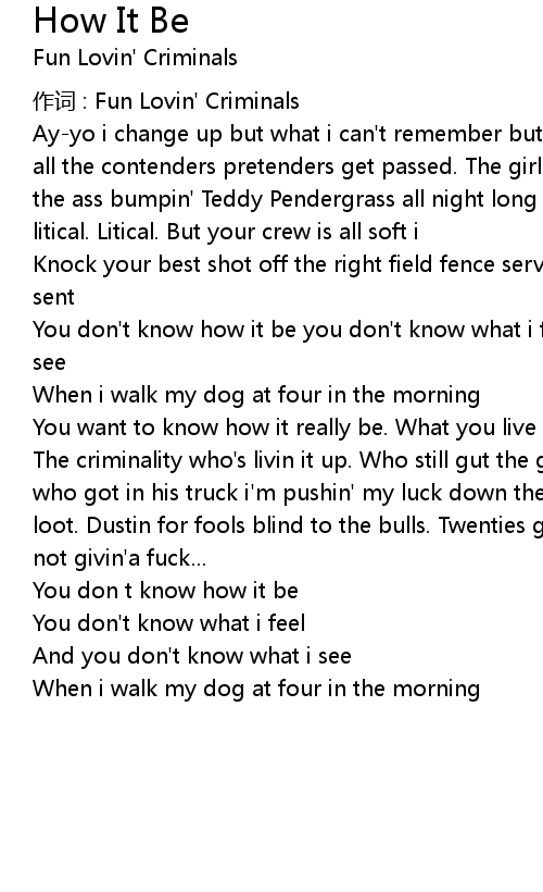 | You want to know how it really be. What you live and see what you gotta weed. The criminality who' s livin it up. Who still gut the guts who' s payin to fuck who got in his truck i' m pushin' my luck down the ave with my crew. Lustin for loot. Dustin for fools blind to the bulls. Twenties gleamin like jewels straight not givin' a fuck... | |