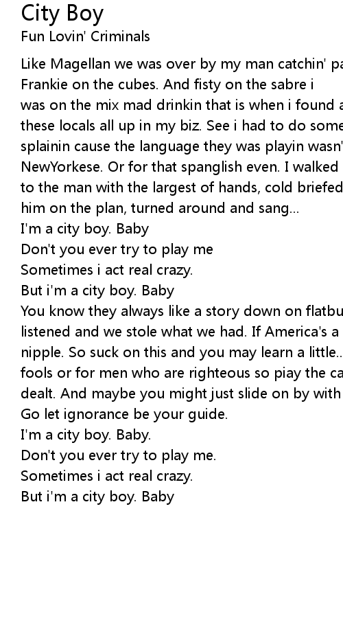 But i'm a city boy. Baby |
