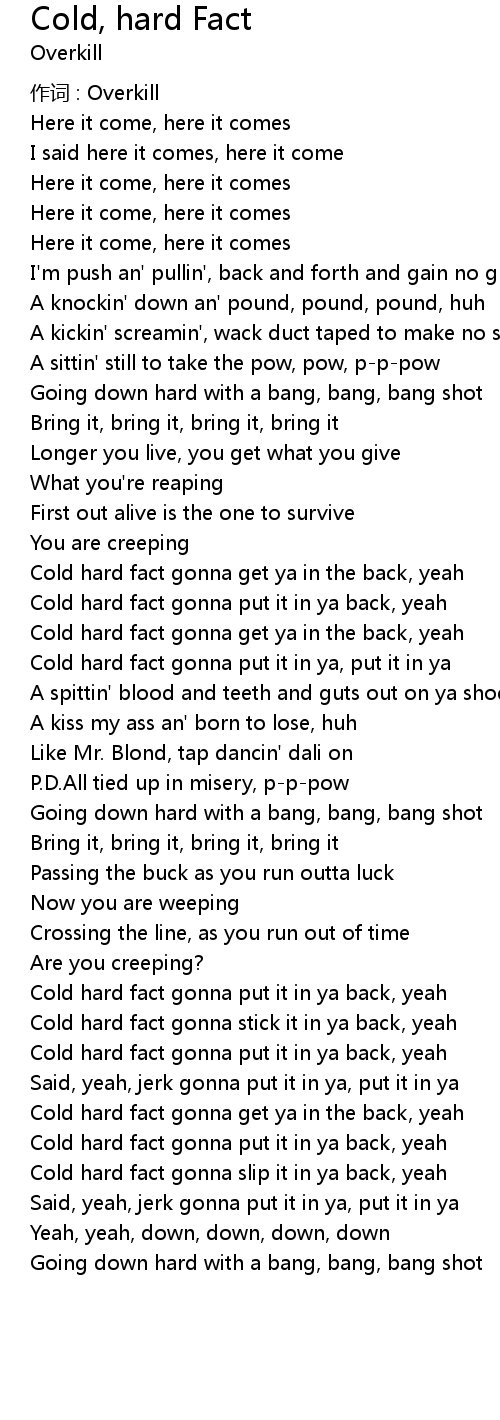 | Cold hard fact gonna stick it in ya back, yeah | |