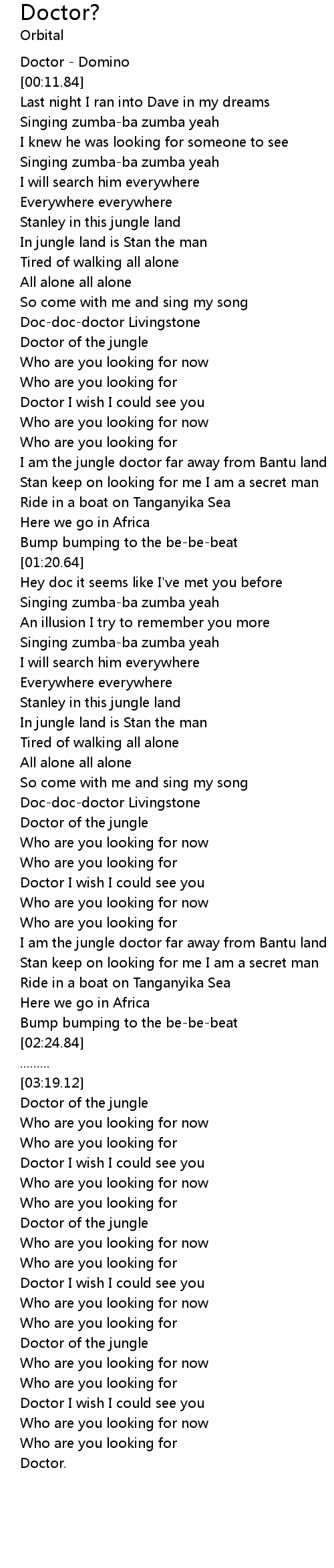 [00:50.20] Doc-doc-doctor Livingstone
