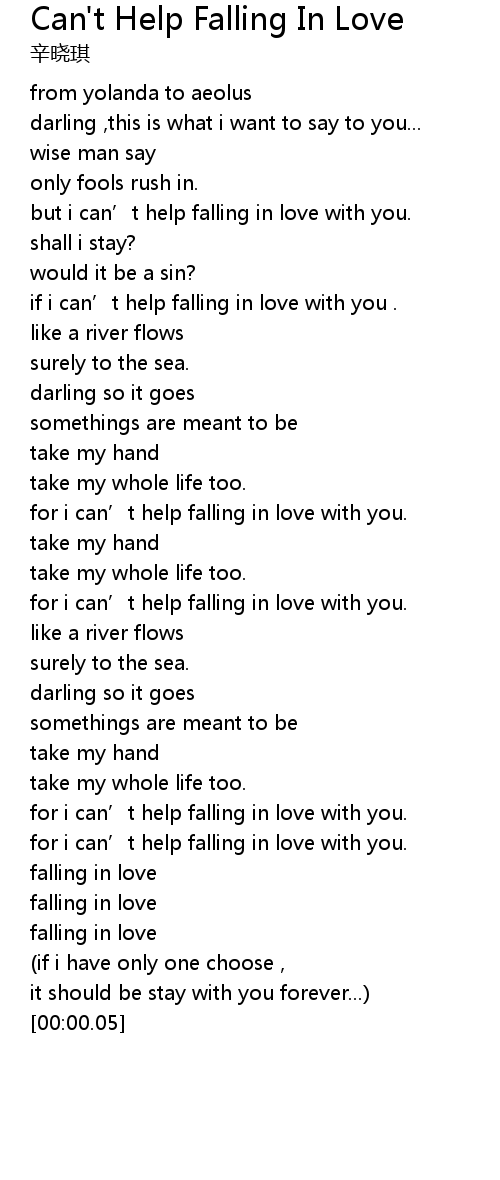| [00:43.49] | if i can' t help falling in love with you . |