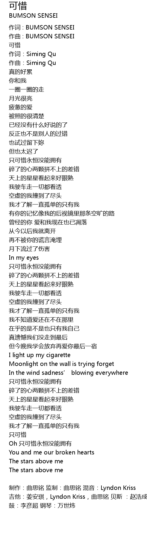 | 作词:Siming Qu | |