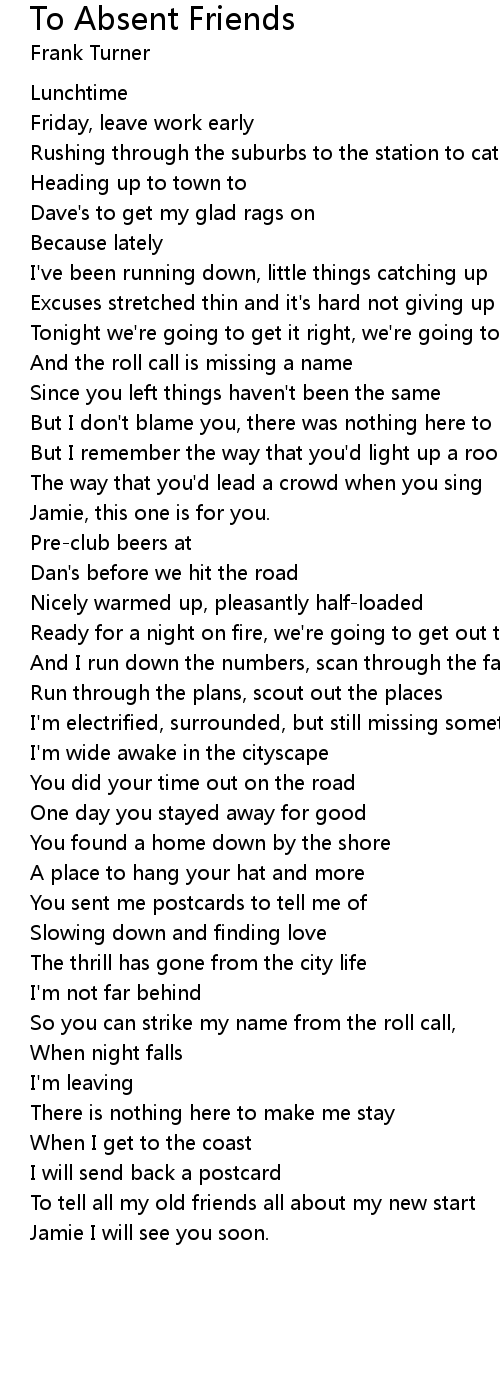 To Absent Friends 歌词