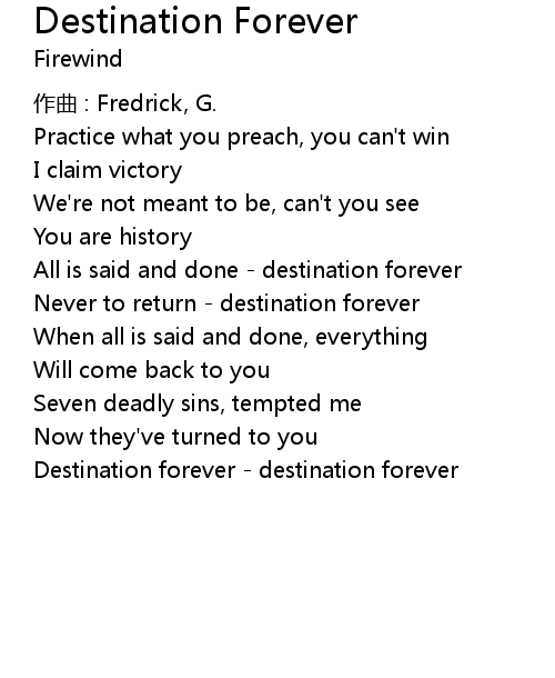 | All is said and done destination forever | |