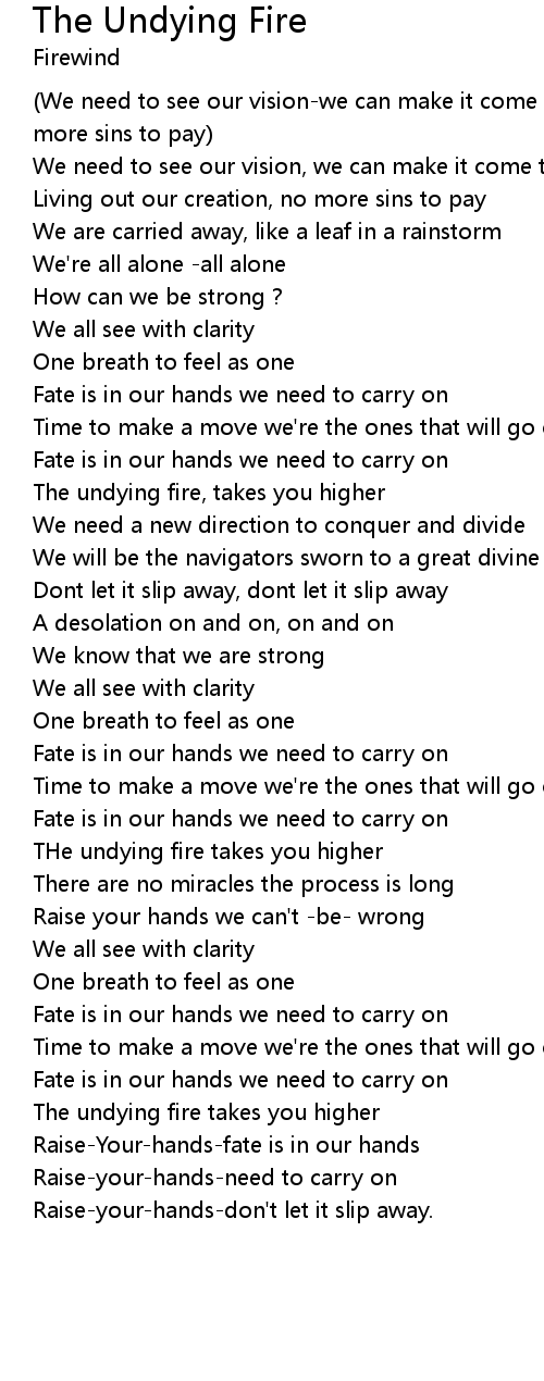 (We need to see our vision-we can make it come trueLiving out our creation, no more sins to pay) |