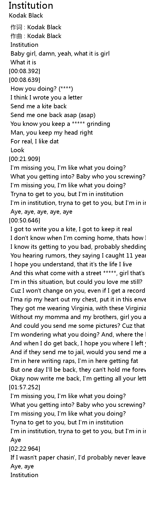 | [00:38.724] | I' m in institution, tryna to get to you, but I' m in institution |
