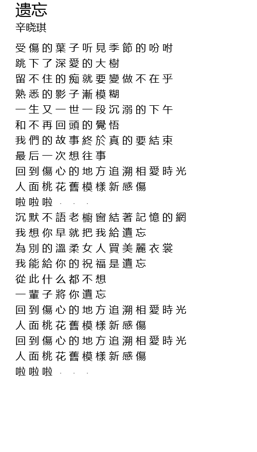 | [02:24.0] | 我 能 給 你 的 祝 福 是 遺 忘 |