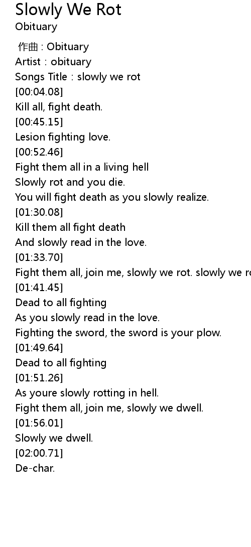 | [01:34.27] | Fight them all, join me, slowly we rot. slowly we rot. |