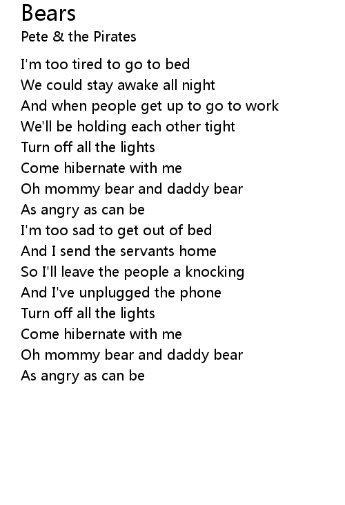 | Oh mommy bear and daddy bear | |