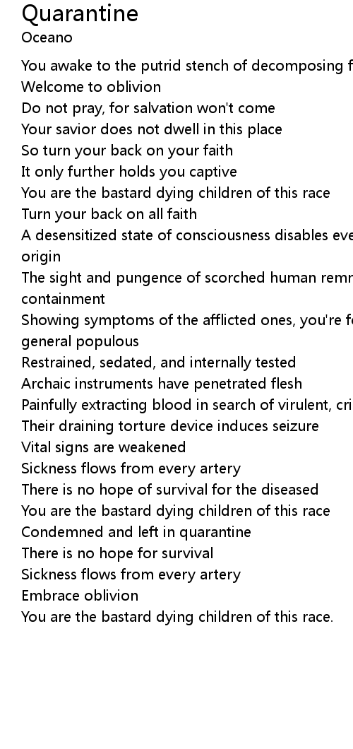 | Showing symptoms of the afflicted ones, you're forcibly secluded from the general populous | |