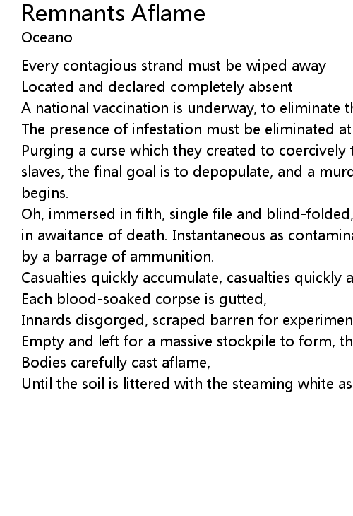 | Until the soil is littered with the steaming white ash of their remains. x2 |