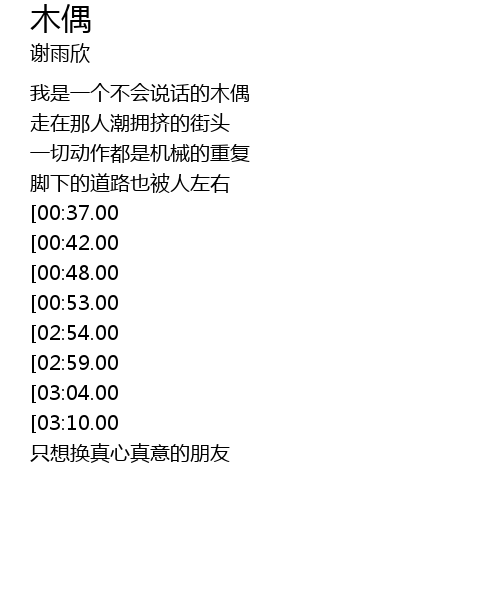 [02:11.00][00:37.00] 我是一个不会说话的木偶