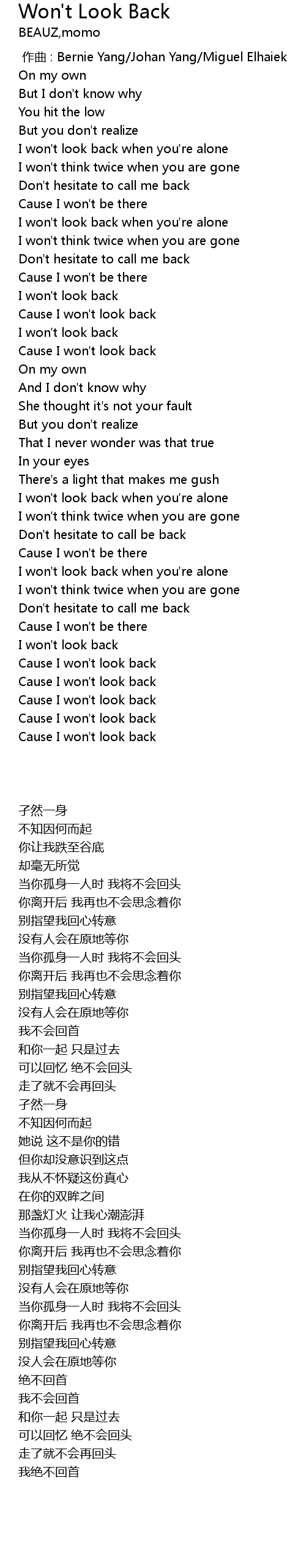 | [02:36.000] | Cause I won't look back |