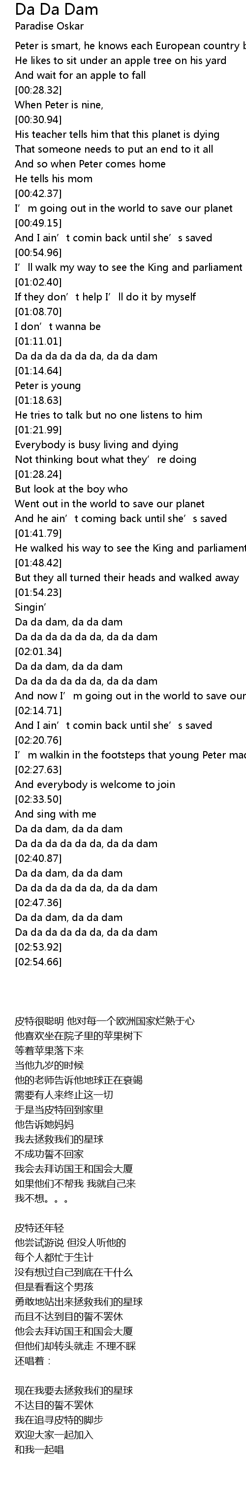 | [02:51.56] | Da da da da da da, da da dam |