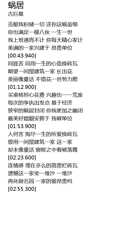 | [01:54.960] | 人何苦 掏尽一生的所爱换砖瓦 |