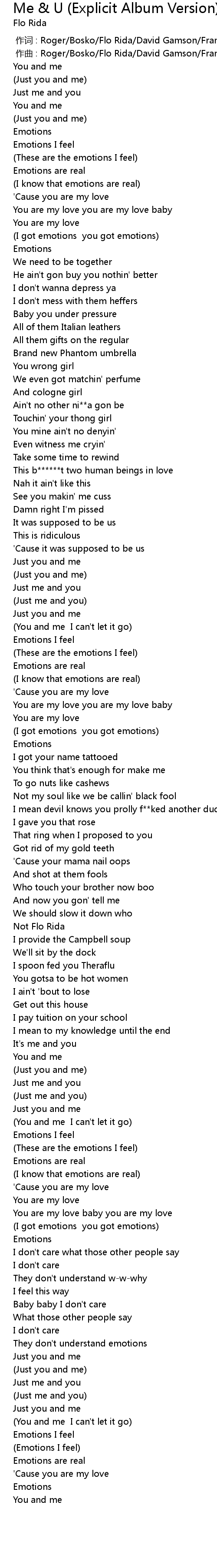 | 歌曲 | Me & U (Explicit Album Version) |