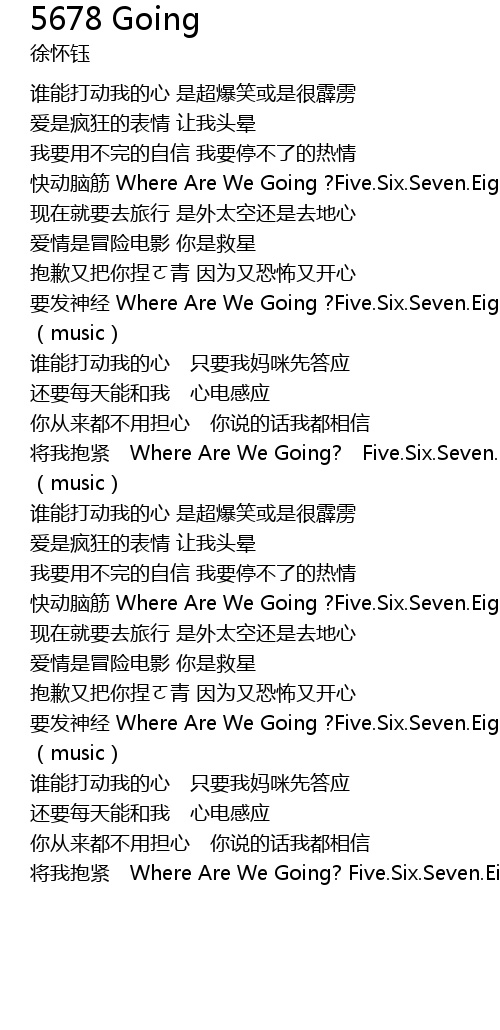 | 歌曲 | 5678 Going |