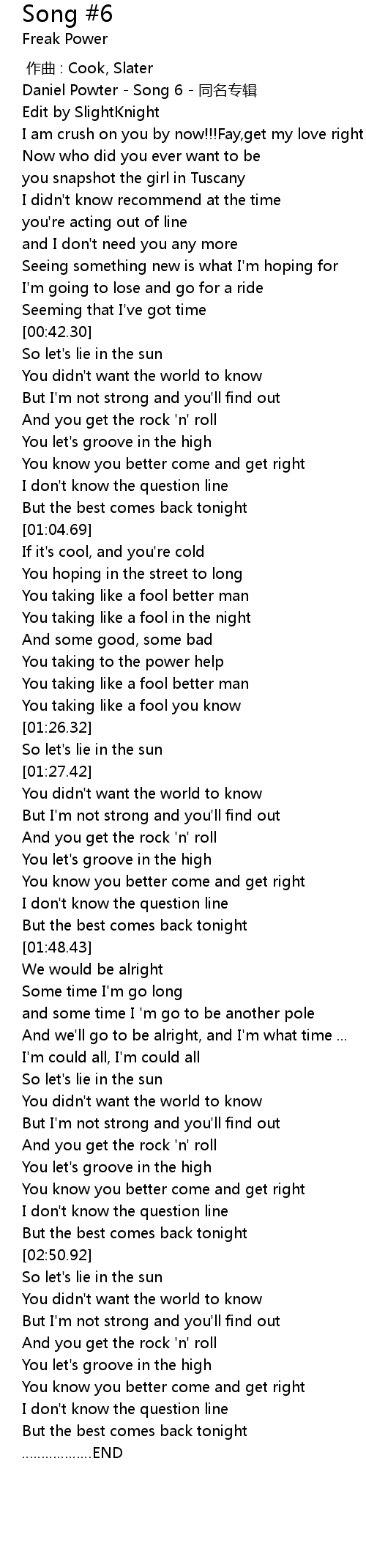 | [00:06.58] | Daniel Powter - Song 6 - 同名专辑 |