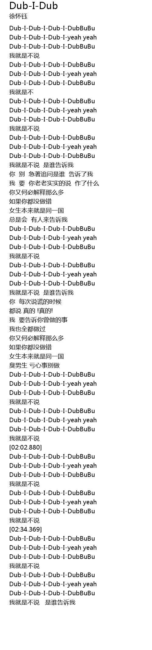 | [02:54.309] | Dub-I-Dub-I-Dub-I-DubBuBu |