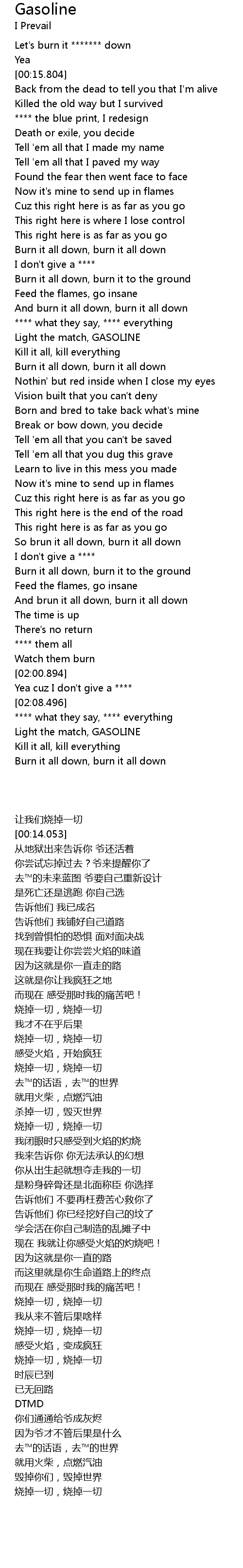 Light the match, GASOLINE |