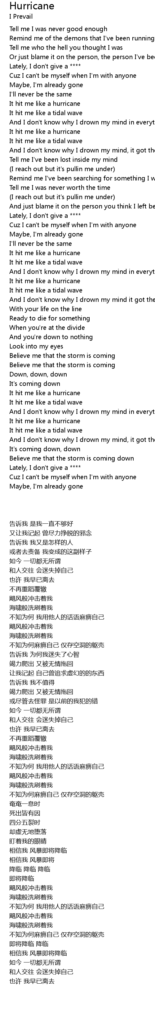 Hurricane 歌词