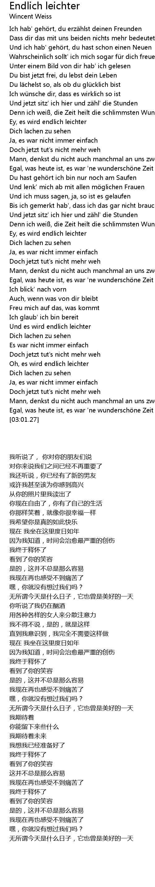 | [02:43.94] | Doch jetzt tut's nicht mehr weh |