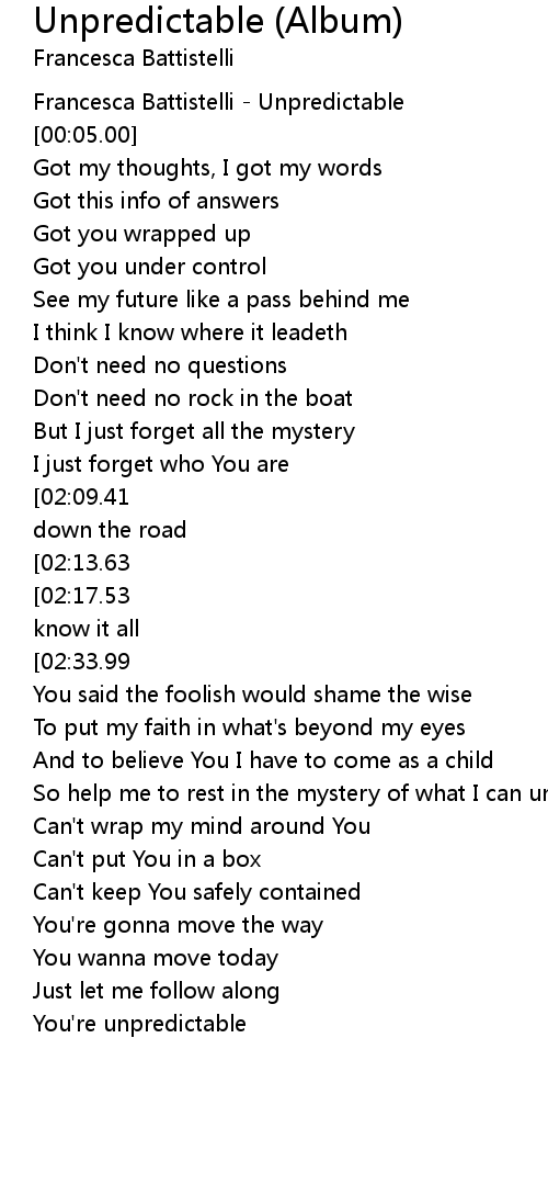[00:02.00] Francesca Battistelli - Unpredictable
