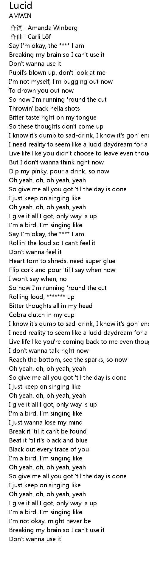 | [00:00.000] | 作词 : Amanda Winberg |