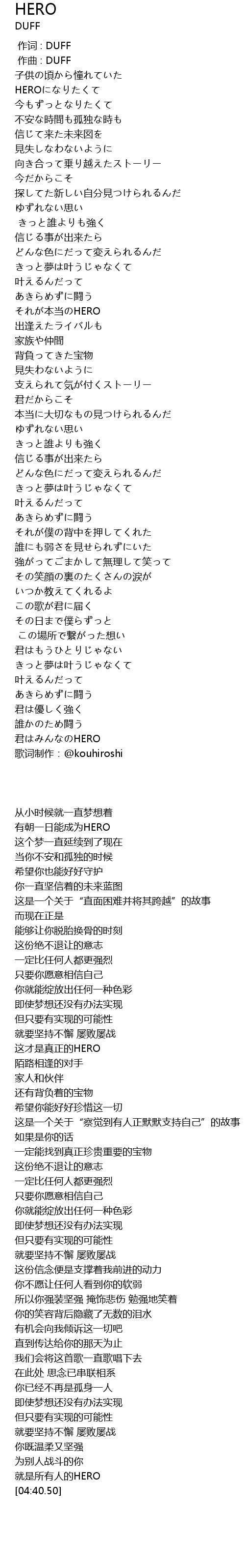 | [04:36.50] | 君はみんなのHERO |