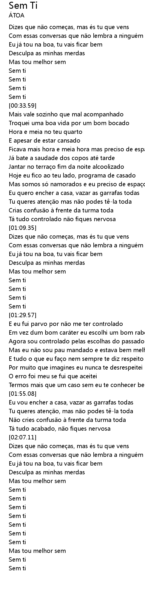 | [01:58.73] | Tu queres atenção, mas não podes tê-la toda |