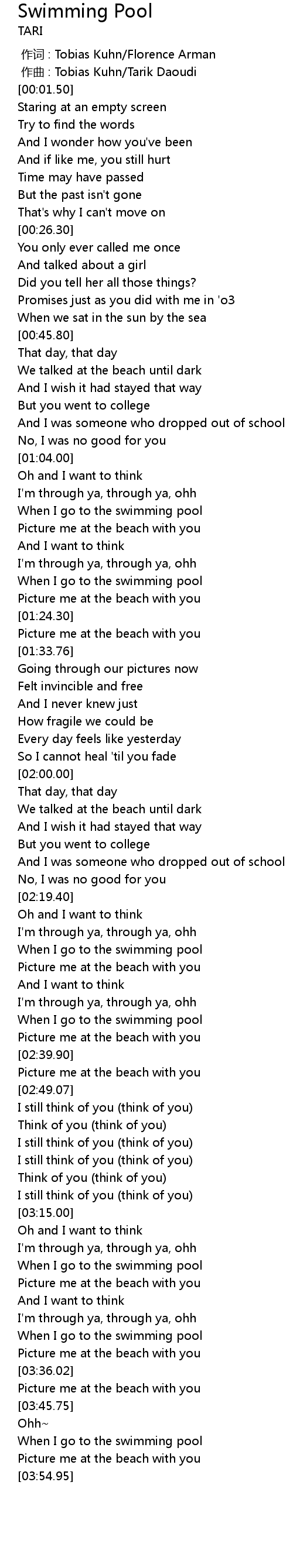 | [03:50.03] | When I go to the swimming pool |