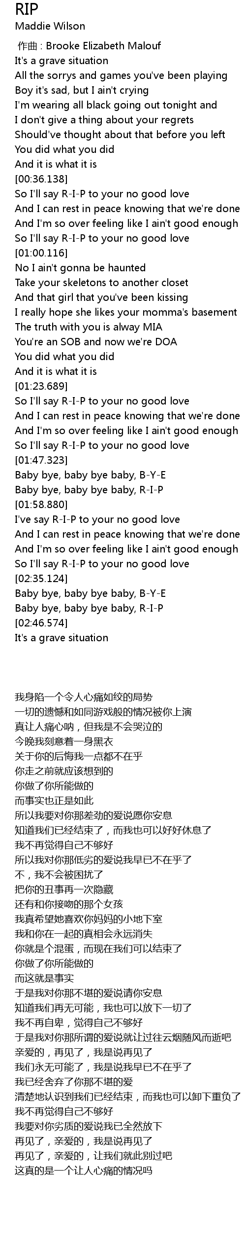 | [01:53.127] | Baby bye, baby bye baby, R-I-P |