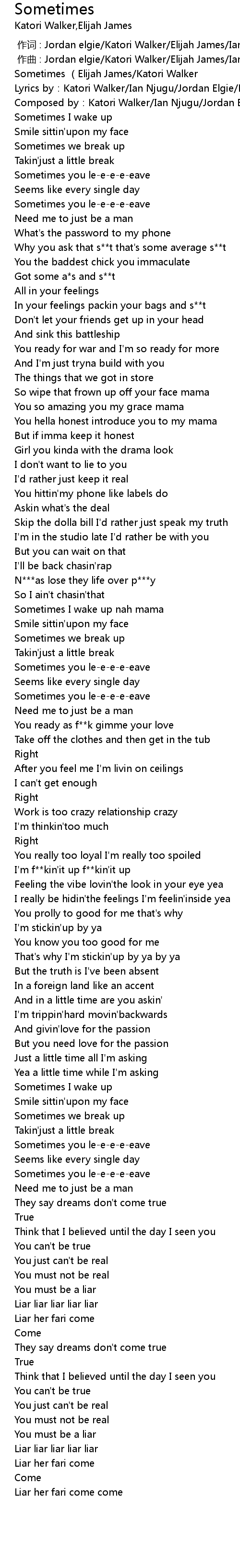 | [00:00.117] | Sometimes (Elijah James/Katori Walker |
