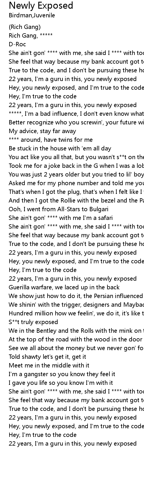 | [00:24.437] | Hey, you newly exposed, and I'm true to the code |