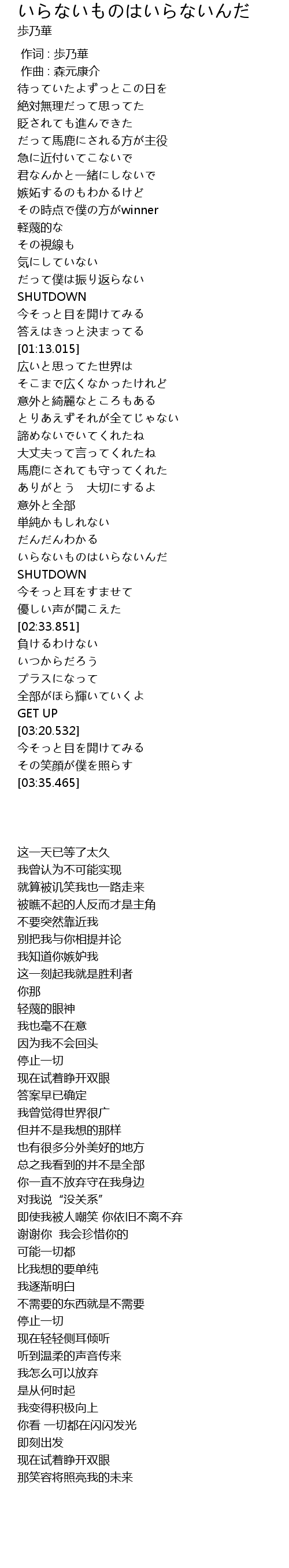 | [00:00.000] | 作词 : 歩乃華 |