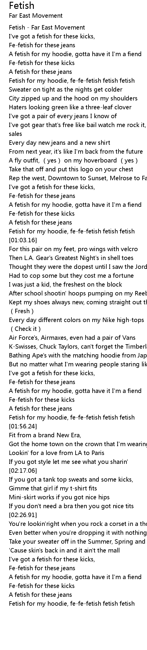 | [02:46.47] | Fetish for my hoodie, fefefetish fetish fetish |
