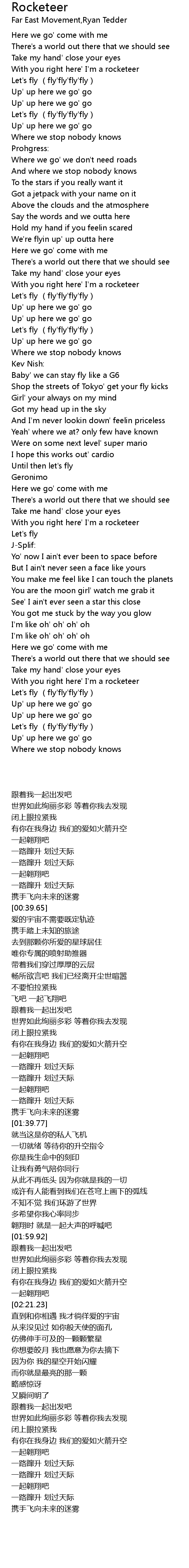 | [00:15.15] | With you right here' I' m a rocketeer |