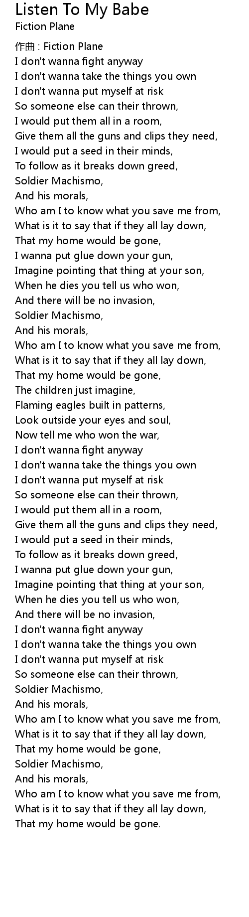 | 歌曲 | Listen To My Babe |