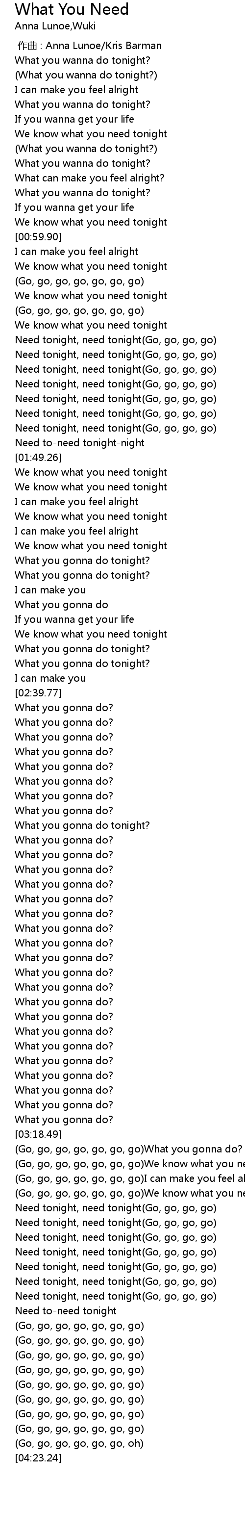 | [03:36.61] | Need tonight, need tonight Go, go, go, go |