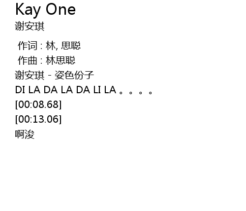 | [00:04.56] | DI LA DA LA DA LI LA 。。。。 |