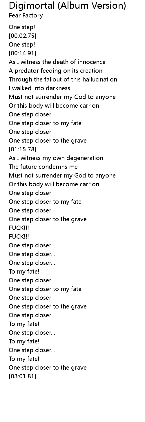 One step closer to my fate |