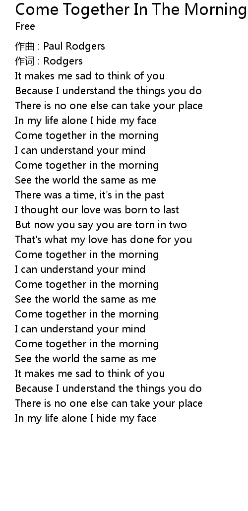 | 歌曲 | Come Together In The Morning |